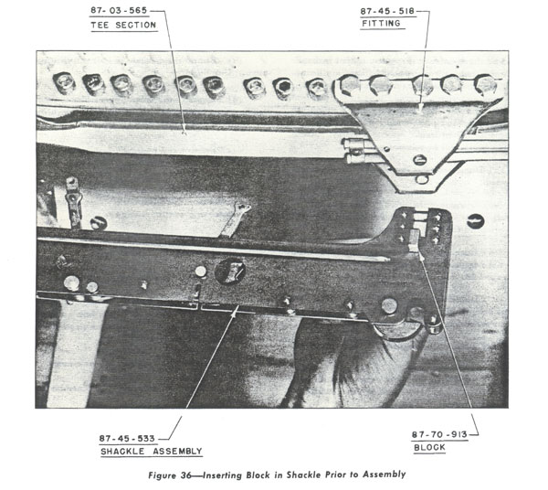 Remove the bolt which attaches the lower end of the elevator stop to the match angle. (q) Disconnect the gun trigger and hydraulic motor electrical conduit at base of the control stick. (r) Remove the two bolts which attach the control stick torque tube forward fittings to the match angles and remove the control stick assembly. (s) Remove the heating and ventilating control rod. (t) Remove all bolts through the match angles and separate the wings. (The center line bulkhead is attached to and will remain with the right panel.)(See Fig. 30.) |